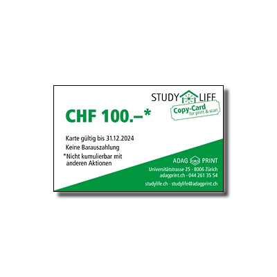 Depot für die CopyCard: CHF 5.– (wird erstattet, wenn die Karte zurückgegeben wird, keine Auszahlung des Restwerts).